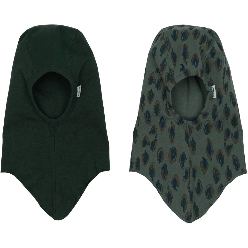 2 pak mikk-line elefanthuer af 100% økologisk bomuld. Huerne er fremstillet i et dobbelt lag stof udelukkende af naturlige fibre, og huerne er bløde, lette og åndbare. Pakken består af en enkelt ensfarvet elefanthue og en elefanthue i et fint printmønster, der fås i forskellige varianter. Elefanthuen dækker det meste af barnets hoved, hals og ansigt, så den beskytter barnet mod kulde og vind, når det leger og udforsker naturen under den åbne himmel.