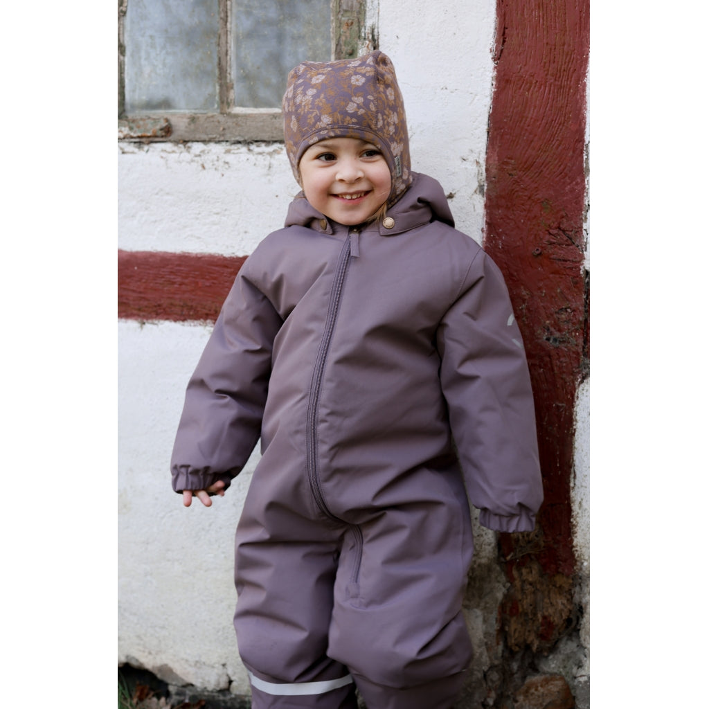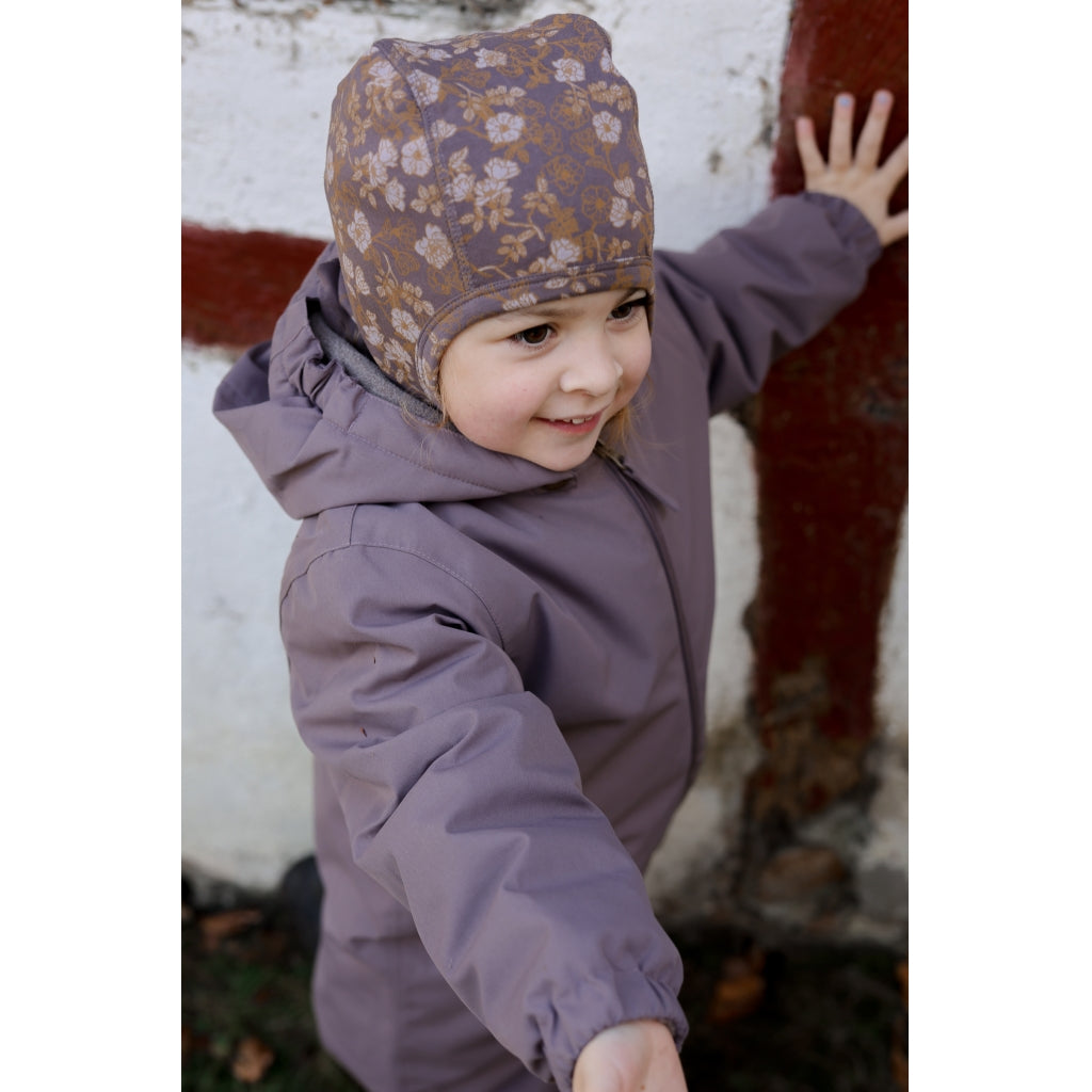 2 pak mikk-line elefanthuer af 100% økologisk bomuld. Huerne er fremstillet i et dobbelt lag stof udelukkende af naturlige fibre, og huerne er bløde, lette og åndbare. Pakken består af en enkelt ensfarvet elefanthue og en elefanthue i et fint printmønster, der fås i forskellige varianter. Elefanthuen dækker det meste af barnets hoved, hals og ansigt, så den beskytter barnet mod kulde og vind, når det leger og udforsker naturen under den åbne himmel.