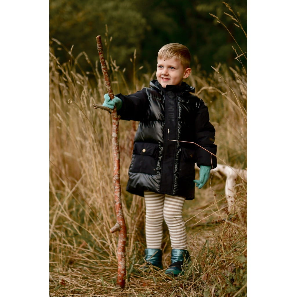 - Vindtæt og isolerende med let og fyldig polyesterfyld, der holder barnet varmt og beskyttet mod vinden.