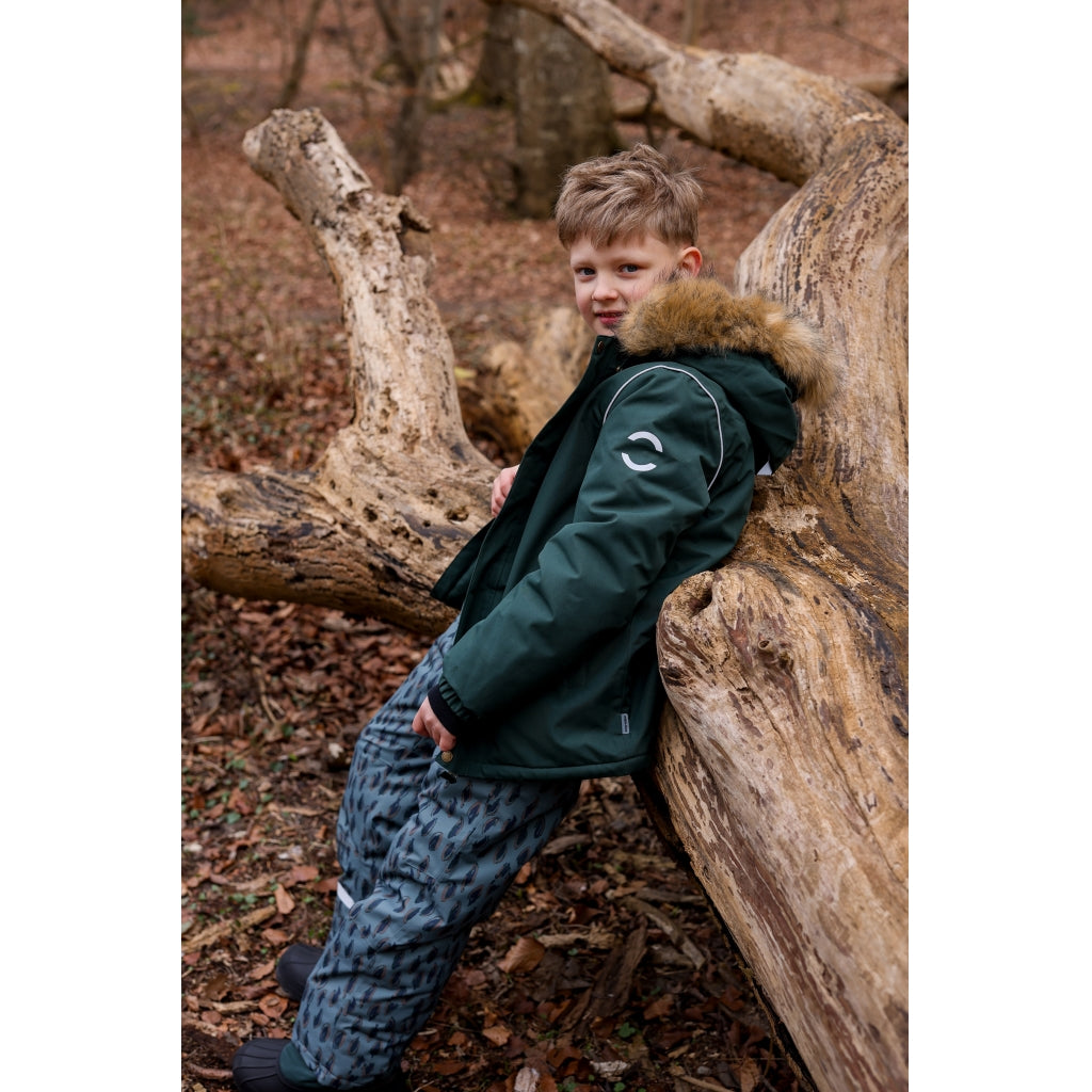Ensfarvet mikk-line vinterjakke til børn, der elsker leg og eventyr i naturen og under åben himmel. Det er en moderne, letvægts vinterjakke, der giver varme og komfort til dit barn i det kolde efterårs- og vintervejr med vind, regn og sne.