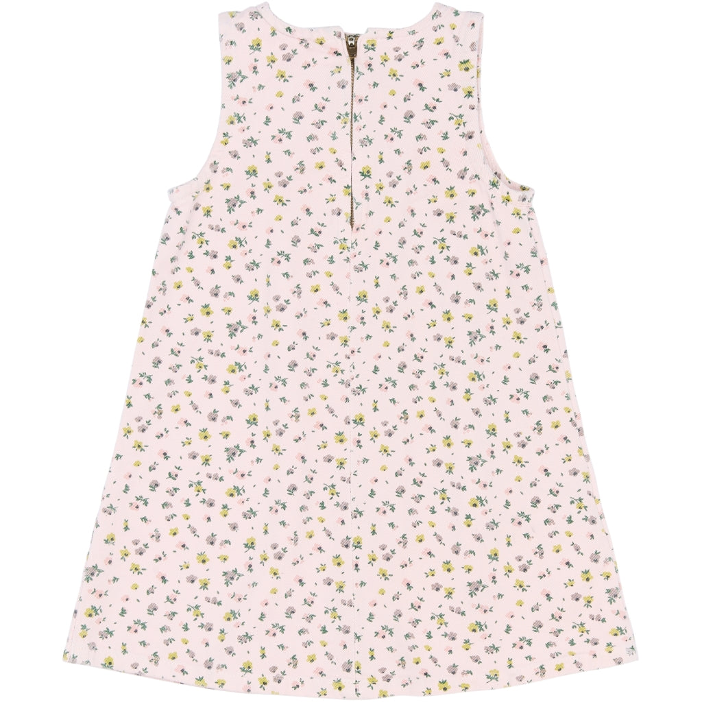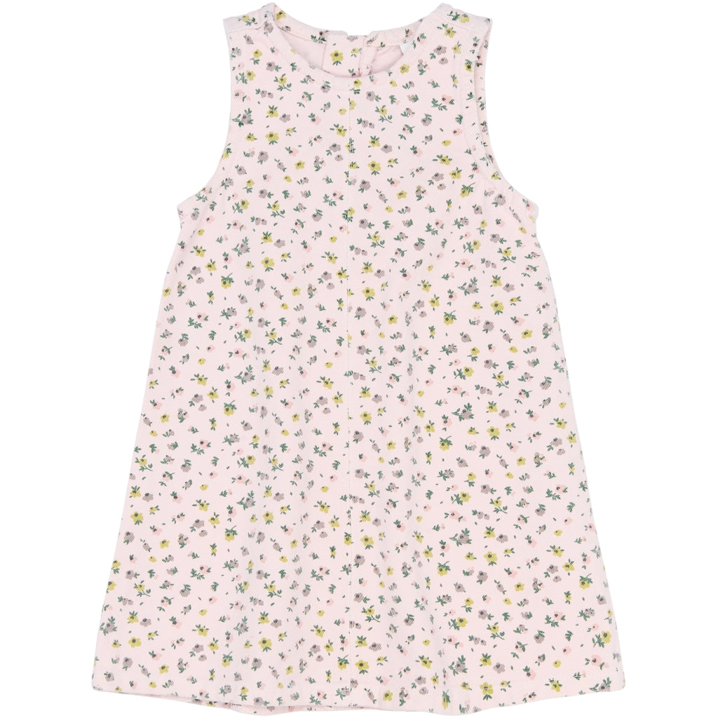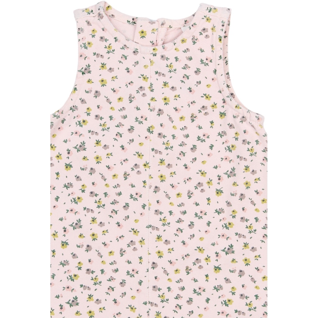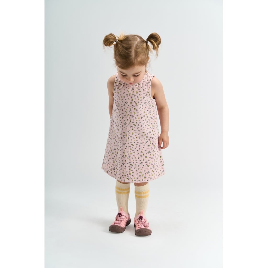 Denne søde kjole til tumlingepiger forener komfort og et legende udtryk. Den er fremstillet i 100% bomuld, som føles blødt mod huden og lader kroppen ånde hele dagen. Den ærmeløse silhuet og den lette A-form giver masser af bevægelsesfrihed, så der er plads til både leg og dans. Det fine, all-over blomsterprint tilfører et romantisk touch, som gør kjolen lige velegnet til hverdag i institutionen og til fødselsdage. Brug den alene på varme dage eller med en cardigan og strømpebukser, når vejret bliver køligere.