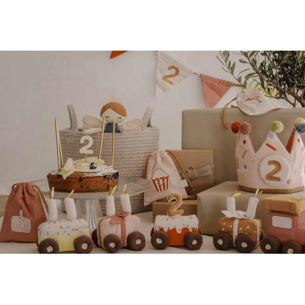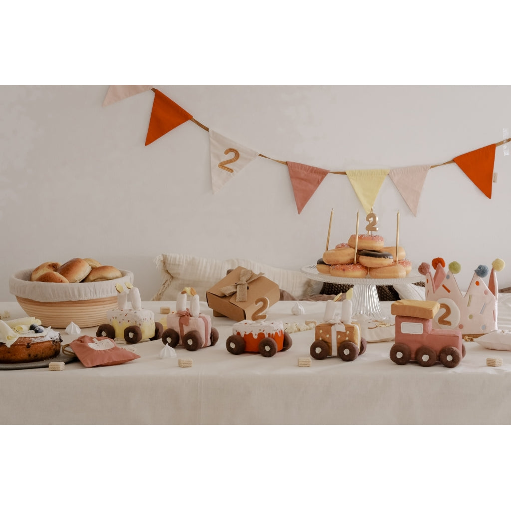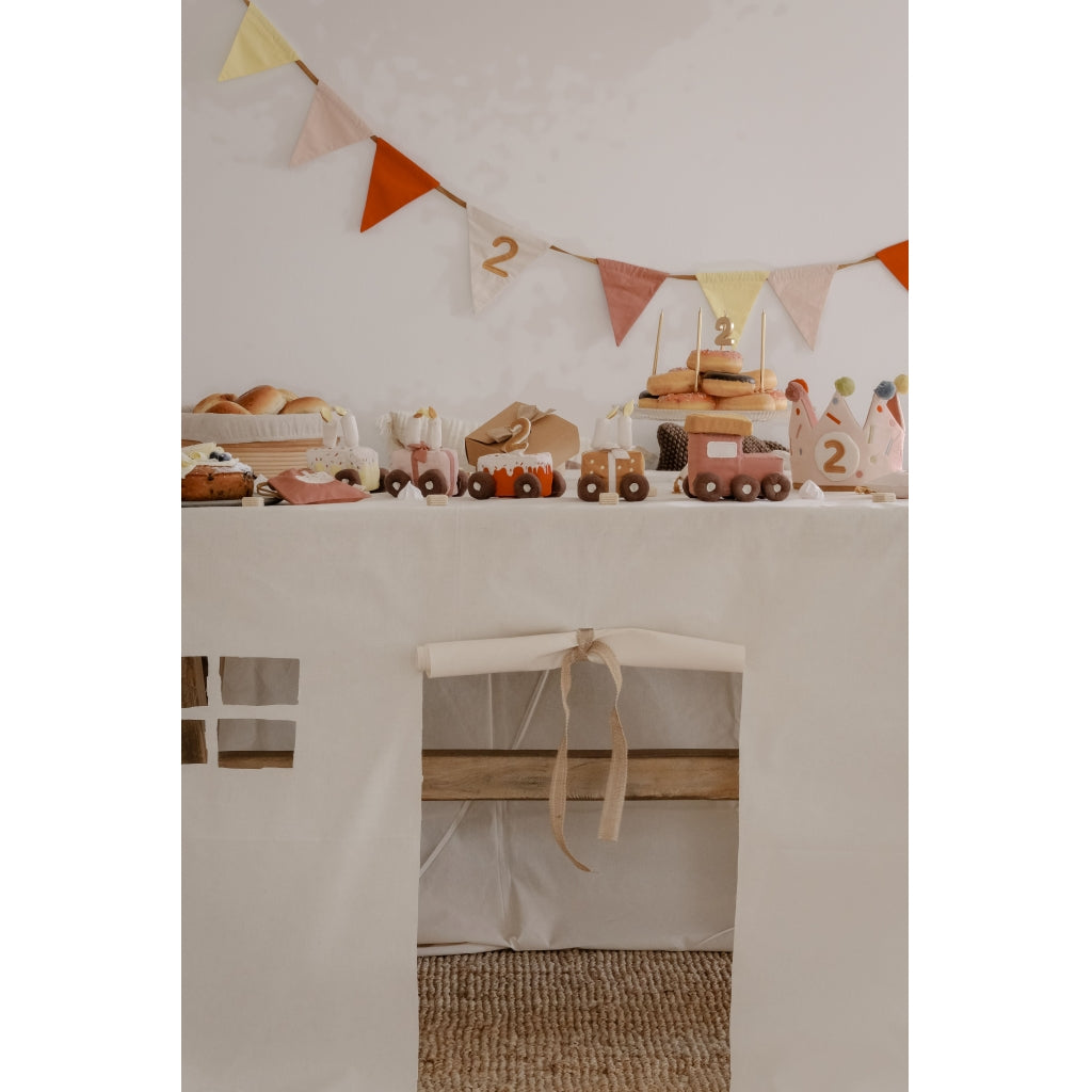 Birthday Train – Rose Mix fra Fabelab skaber en varm og hyggelig stemning ved fødselsdagsbordet. Det lyserøde trætog er fyldt med søde figurer, en lysholder og udskiftelige tal fra 1–9.