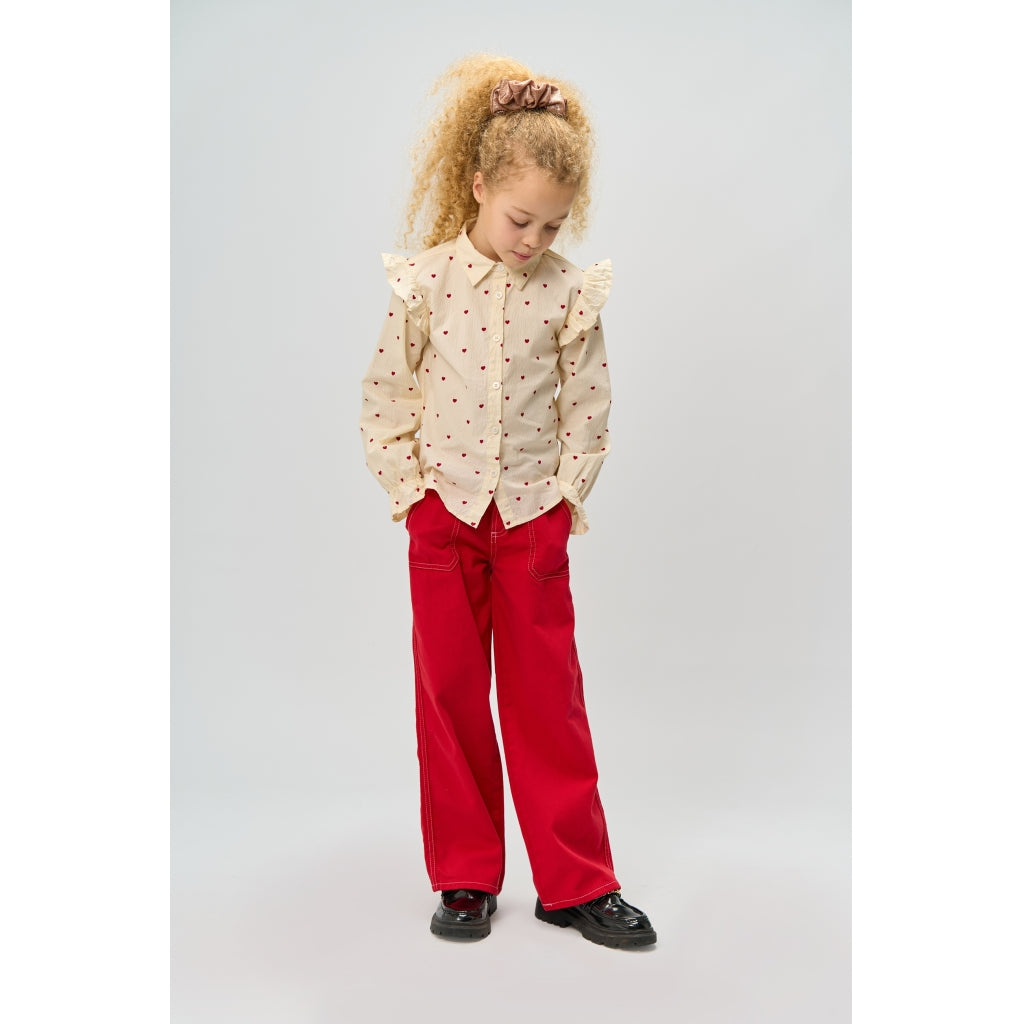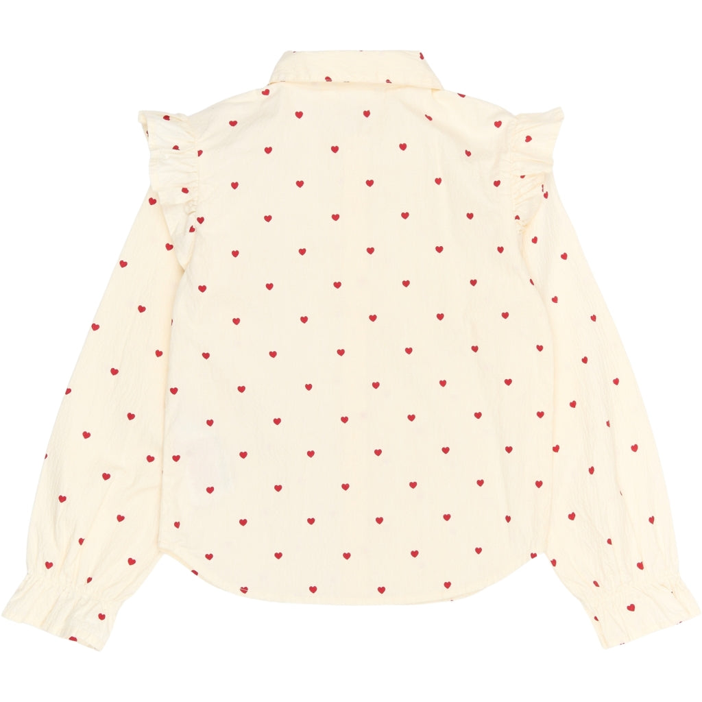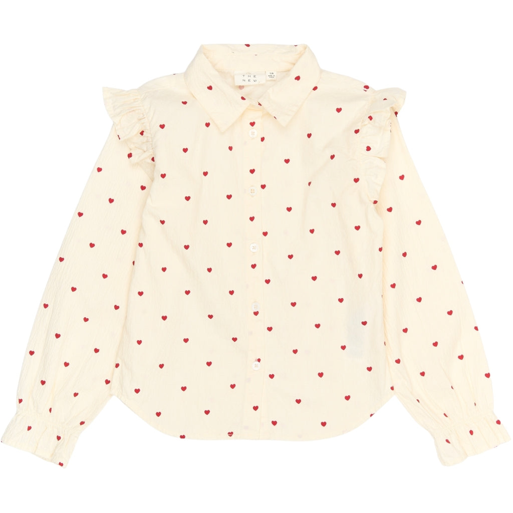This shirt from THE NEW is designed in a regular fit, offering a classic and relaxed look. It features long sleeves and a cute heart AOP (all-over print), adding a playful touch to your wardrobe. The flip collar gives it a stylish twist, while the delicate frills on the shoulders create a feminine detail that stands out. Perfect for both everyday wear and special occasions, where you want to radiate both comfort and charm.