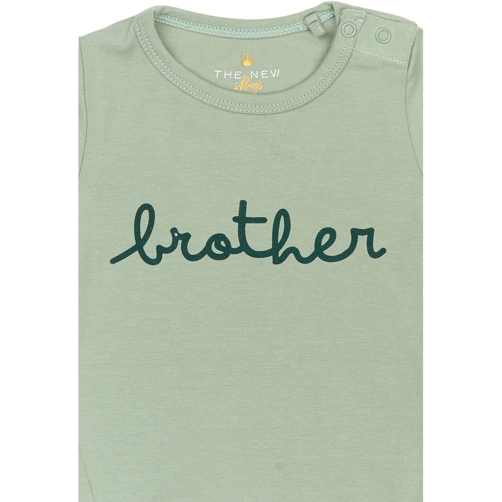 Denne langærmede body fra THE NEW Siblings er en sød og komfortabel tilføjelse til babygarderoben. Den er designet med et broderet "brother"-tekstprint på brystet, som giver et personligt og charmerende udtryk. Bodyen har en tætsiddende pasform og lukkes nemt med trykknapper ved skulderen og i bunden – perfekt til både hverdag og leg.