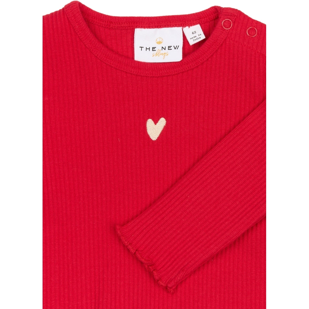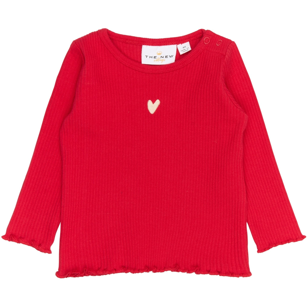 Denne langærmede T-shirt fra THE NEW Siblings er en sød og enkel basisstyle med fine detaljer. Den er designet med bølgede kanter ved hals, ærmer og bund samt et lille hjerteprint på brystet, som tilføjer et charmerende touch. Modellen har en tætsiddende pasform og er nem at kombinere med både bukser, nederdele og under en cardigan.
