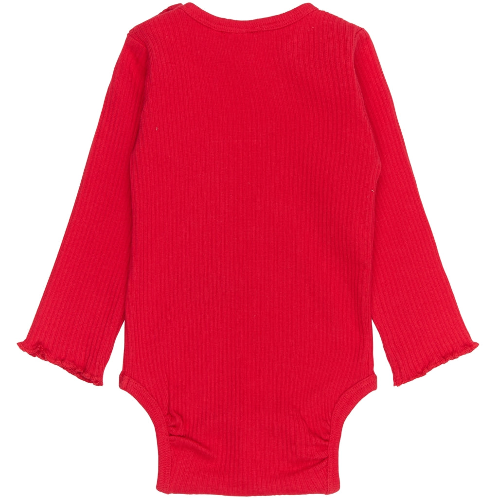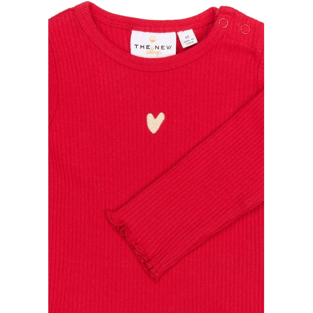 Denne langærmede body fra THE NEW Siblings er både praktisk og sød i sit udtryk. Den er designet med fine flæsekantede ærmer og et lille hjerteprint på brystet, der tilføjer et charmerende touch. Bodyen har trykknapper ved skulderen og i bunden, hvilket gør den nem at tage af og på – perfekt til både hverdag og leg.