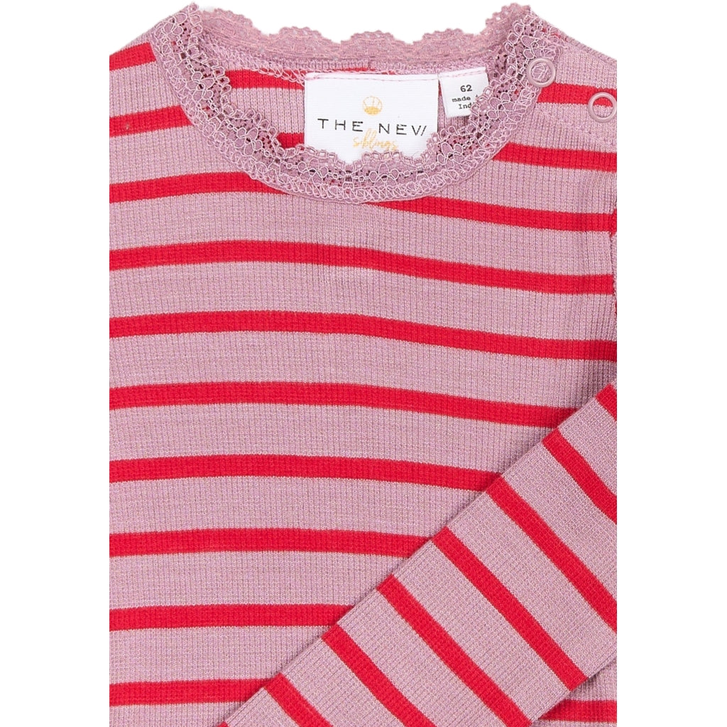 TNSBRie Langærmet Rib Bodystocking - Mauve Shadows Striped