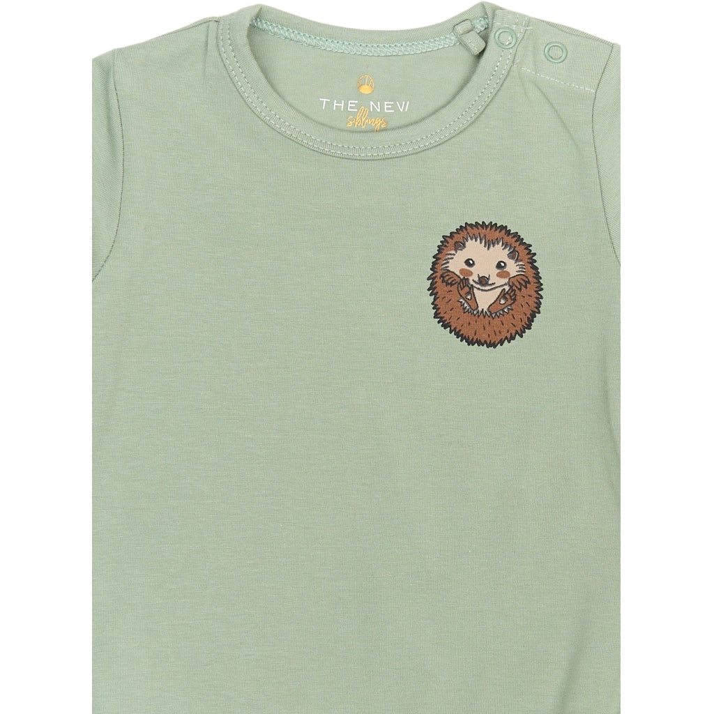 Denne langærmede body fra THE NEW Siblings er en blød og praktisk hverdagsfavorit til de mindste. Den er designet med et lille og nuttet pindsvineprint på brystet, som giver et sødt og charmerende udtryk. Bodyen har en tætsiddende pasform og praktiske trykknapper ved skulderen og i bunden, hvilket gør den nem at få af og på.