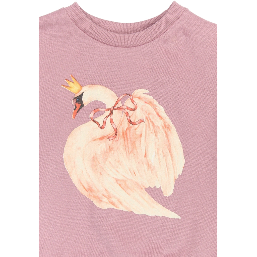 Denne sweatshirt fra THE NEW Siblings kombinerer komfort og fantasi i ét sødt design. Den er dekoreret med et smukt frontprint af en svane med krone, som tilfører et eventyrligt og charmerende udtryk. Sweatshirten har en afslappet pasform og klassiske ribkanter ved hals, ærmer og bund, som sikrer en behagelig og fleksibel pasform. Fås i to farver.