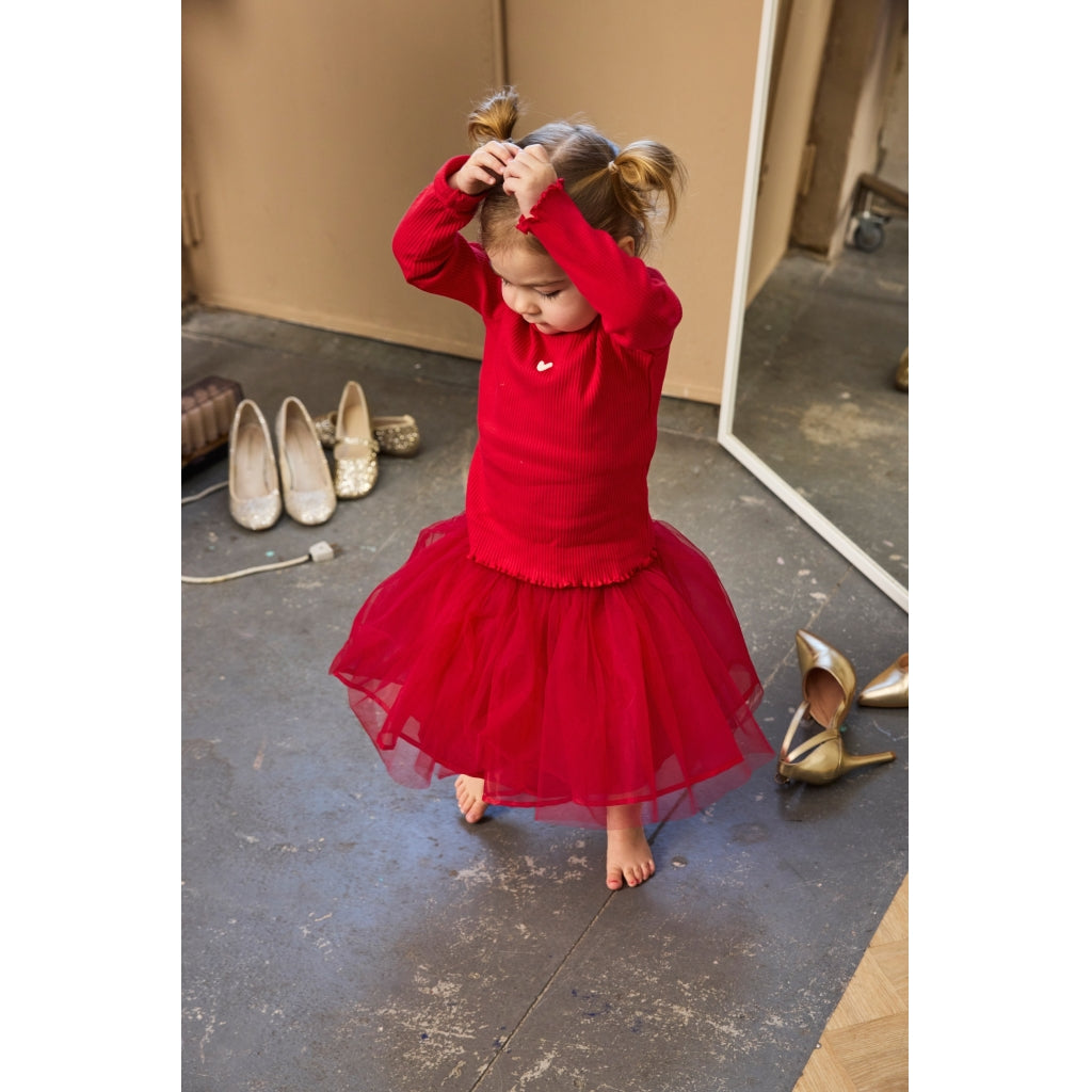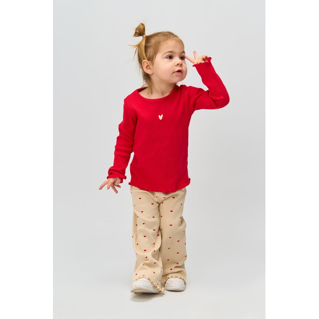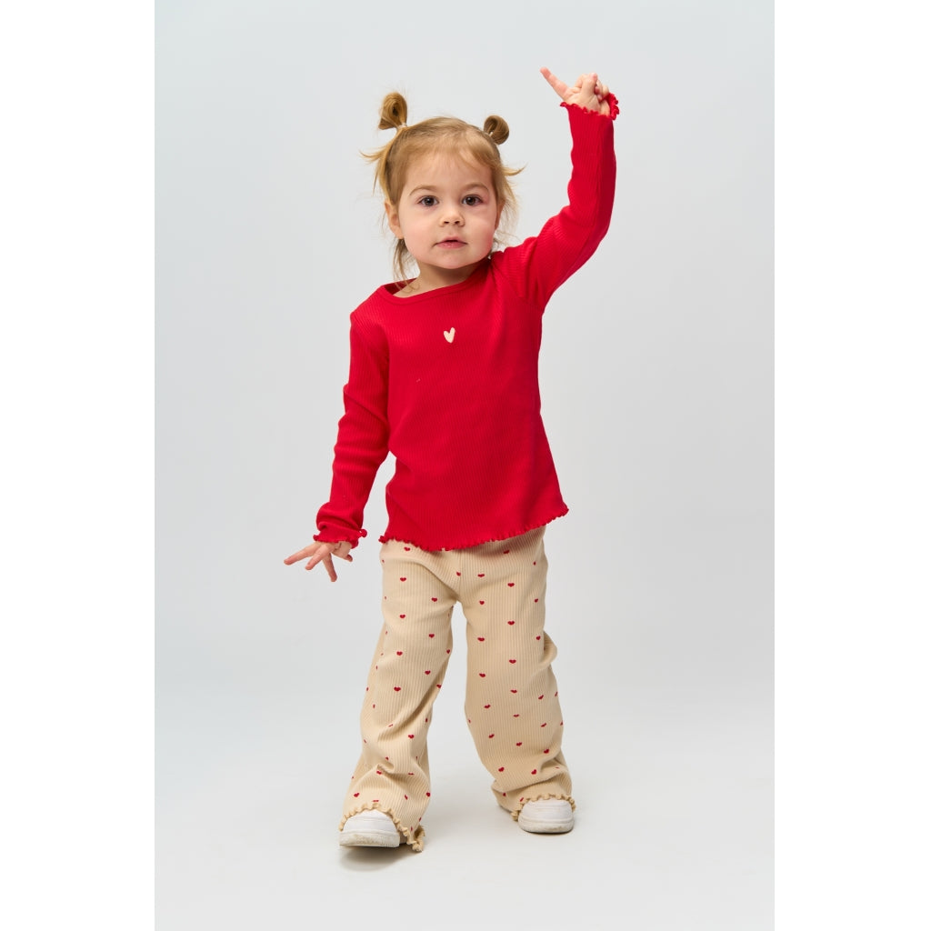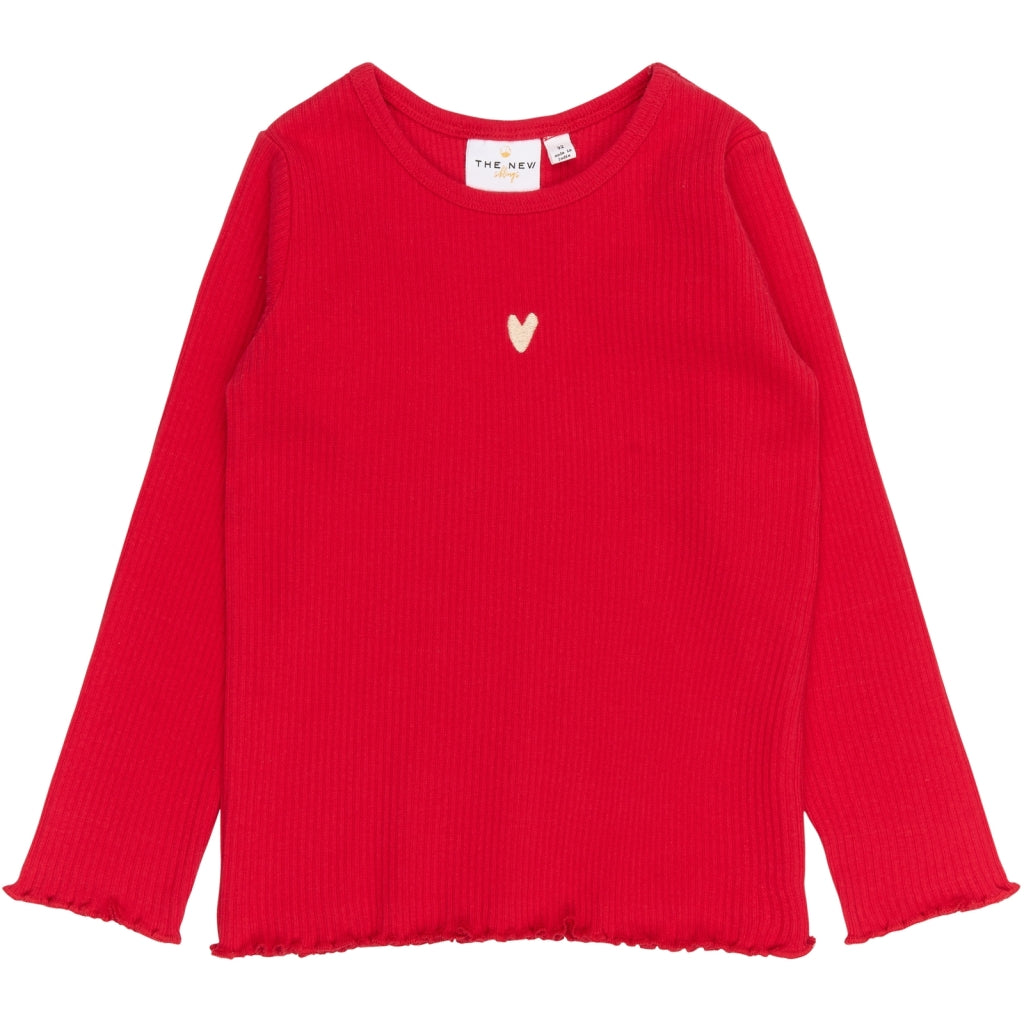Denne langærmede T-shirt fra THE NEW Siblings er en sød og enkel basisstyle med fine detaljer. Den er designet med bølgede kanter ved hals, ærmer og bund samt et lille hjerteprint på brystet, som tilføjer et charmerende touch. Modellen har en tætsiddende pasform og er nem at kombinere med både bukser, nederdele og under en cardigan. Denne Tee matcher me de tilhørende TNSTRianna Rib Leggings og fås i to farver.