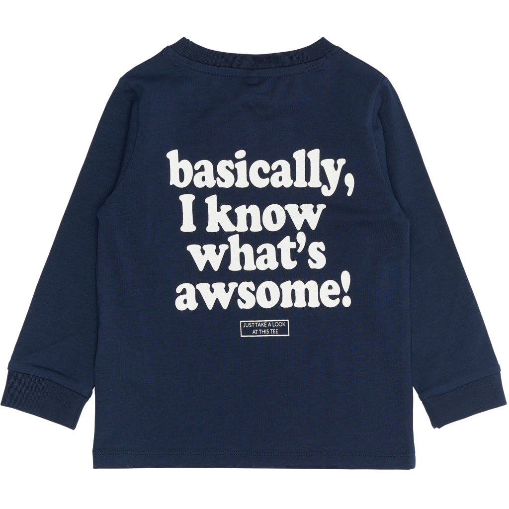 Denne langærmede T-shirt fra THE NEW Siblings er en cool og selvsikker hverdagsstyle til de små. Den er designet med grafiske tekstprint både foran og bagpå – herunder den iøjnefaldende sætning “basically, I know what’s awsome!” på ryggen. T-shirten har en klassisk pasform i blød bomuld, som sikrer komfort hele dagen.