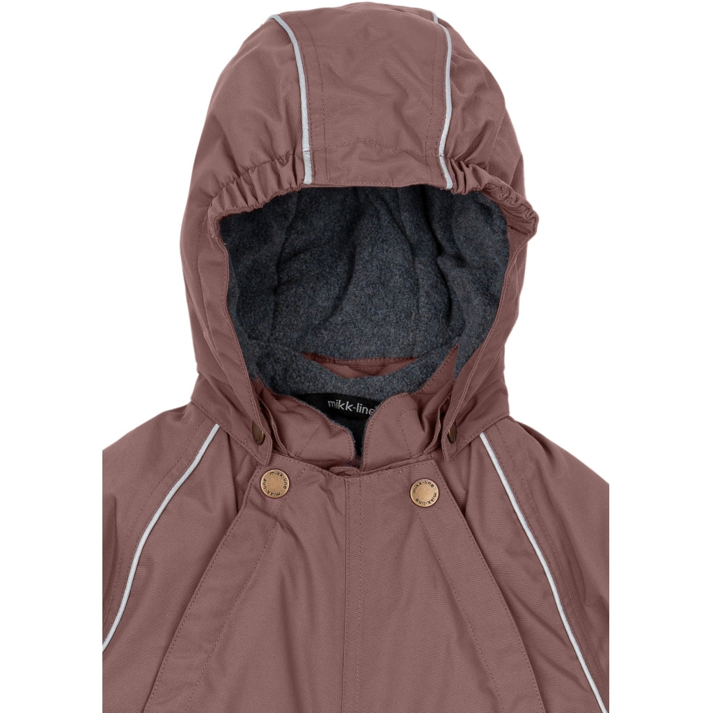 Ensfarvet mikk-line baby flyverdragt til børn, der elsker leg og eventyr i naturen og under åben himmel. Det er en holdbar nylon flyverdragt af høj kvalitet og enkelt design, der holder barnet varmt og komfortabelt i det kolde efterårs- og vintervejr med vind, regn og sne. Flyverdragten er lavet af nylon og polstret med polyesterfyld. Hætten og overkroppen har blødt fleece foer, hvorimod ærmerne og benene har en glat og gnidningsfri indvendig overflade. Vi har anvendt Solution Dye til farvning af det glatte for, da det bl.a. mindsker forbruget af vand i produktionen. Den er naturligvis også imprægneret med fluorfri BIONIC-FINISH® ECO imprægnering.