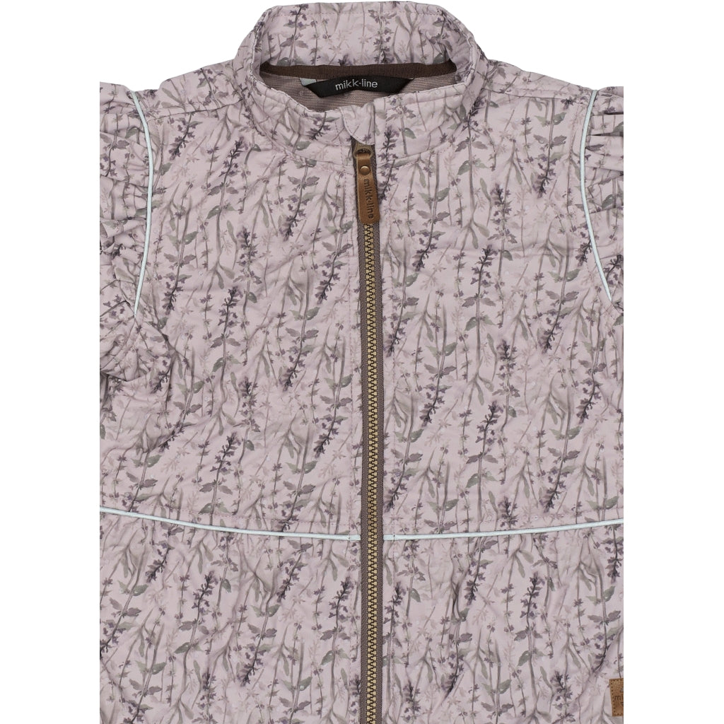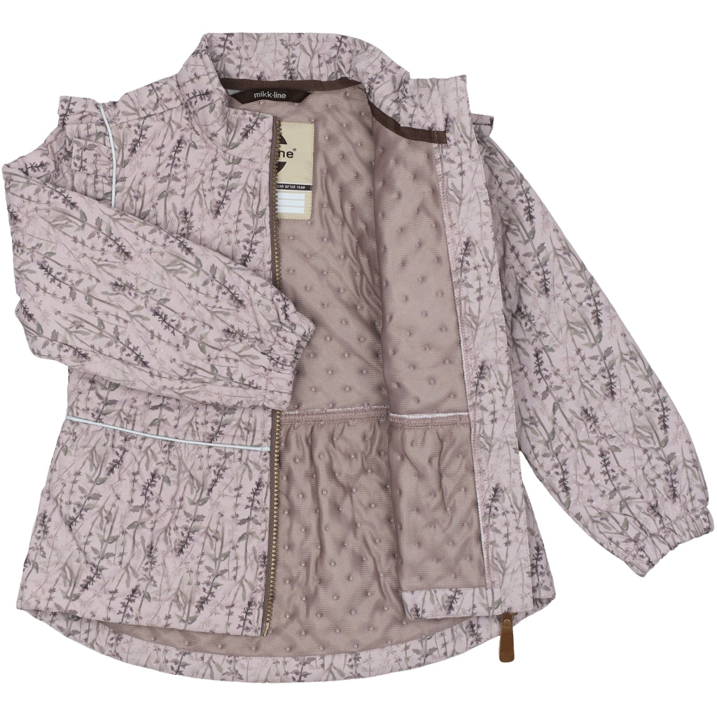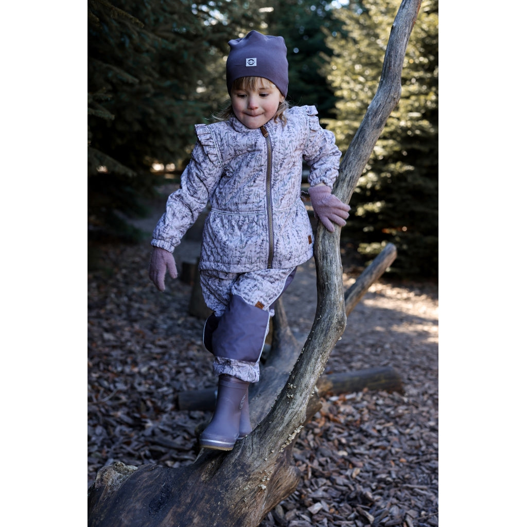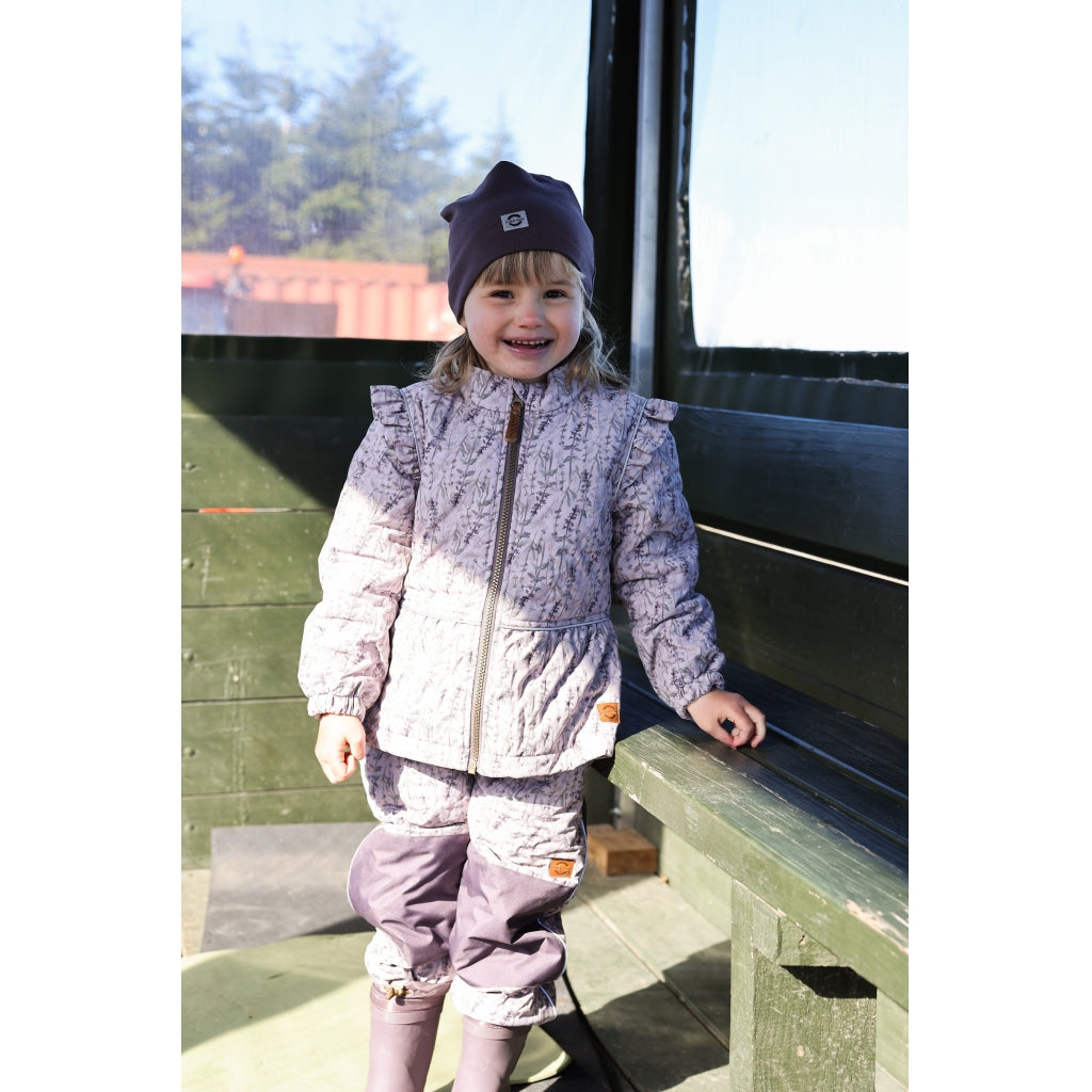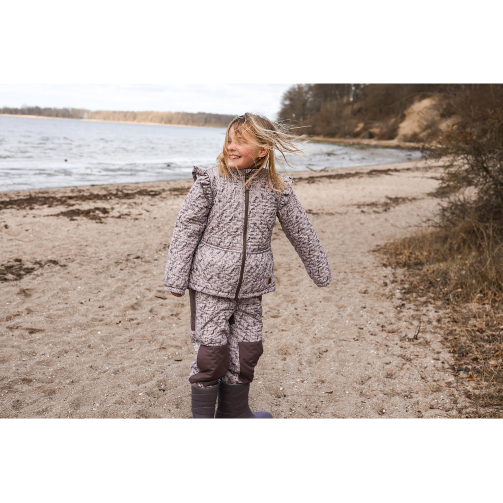 Feminint Thermal+ sæt fra mikk-line med et smukt printmønster (AOP), samt flæser på skuldrene. Dette isolerende termosæt har vandtæt stof, der er imprægneret med BIONIC-FINISH® ECO. Sømmene er dog ikke vandtætte, men åndbarheden er god. Alt i alt er det et stilfuldt og funktionelt termosæt, der vil holde pigen varm og tør, så hun kan nyde udendørseventyr imellem sæsonerne med omskifteligt, køligt og fugtigt vejr. Sættet har også et indvendigt navneskilt med plads til mere end ét navn, så giv det gerne videre så endnu et barn kan få glæde af det.