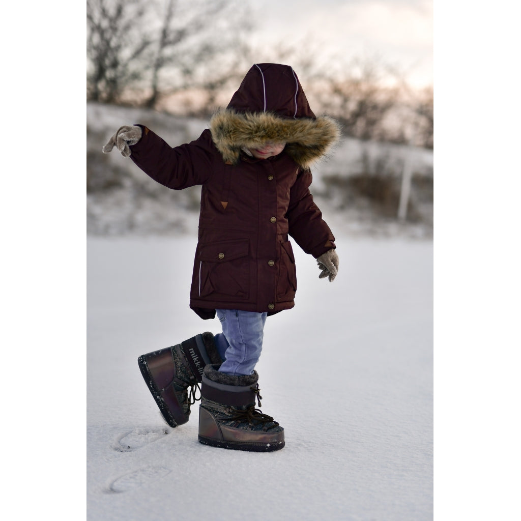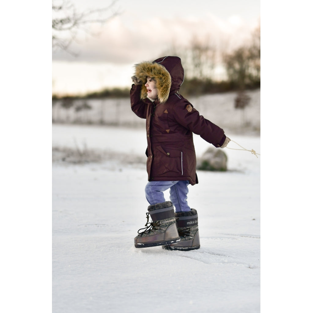 Mikk-line twill parka vinterjakke til piger i størrelse 92-152 cm (ca. 2-12 år), der elsker leg og eventyr i naturen og under åben himmel. Denne smukke vinterjakke af nylon har en særlig god kvalitet og kan holde til de mest ekstreme vejrforhold med vind, regn og sne. Jakken er lavet af nylon beklædt med en klar TPU membran, og den indeholder ekstra kraftig polyesterfyld. Hætten, kraven og det øverste af kroppen har superblødt teddy foer, hvorimod ærmerne, lommerne og det nederste af kroppen har en glat og gnidningsfri indvendig overflade. Den er imprægneret med fluorfri BIONIC-FINISH® ECO imprægnering.