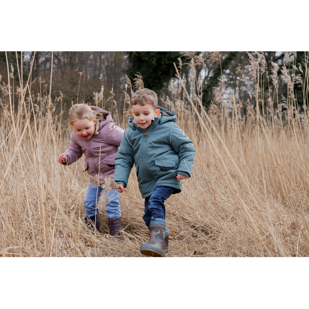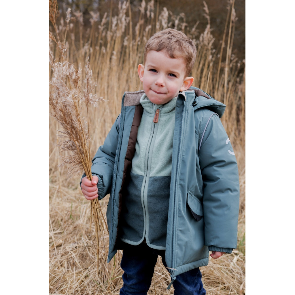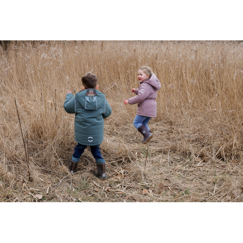 - Vindtæt og isolerende med let og fyldig polyesterfyld, der holder barnet varmt og beskyttet mod vinden.