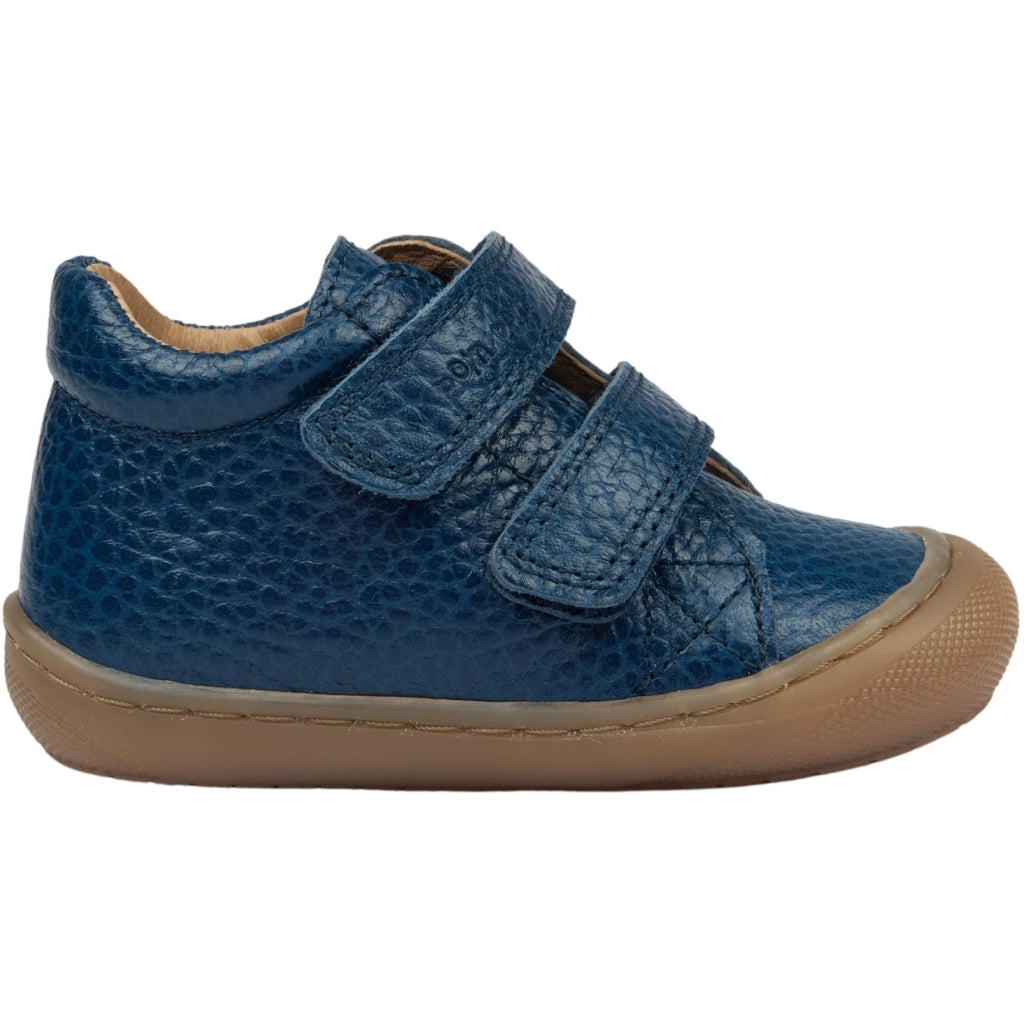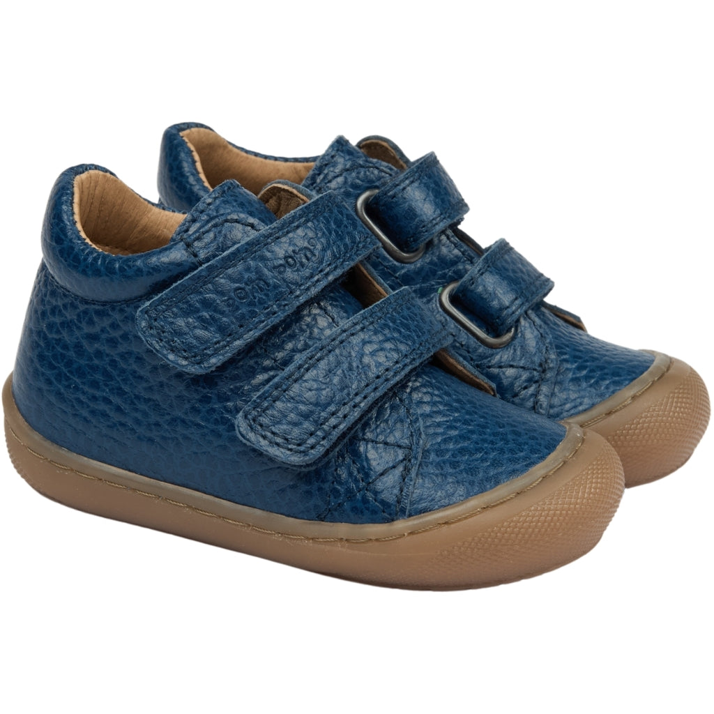 Pom Pom First™ Sport Velcro sko. Flot fleksibel sko. Den lukkes med to velcrobånd, hvilket gør det nemt at justere. Skoen har en fast hælkappe, der understøtter og stabiliserer den lille fod. Gummisålen går lidt op på tåen, så skoen er beskyttet mod slid. Produceret i Portugal.