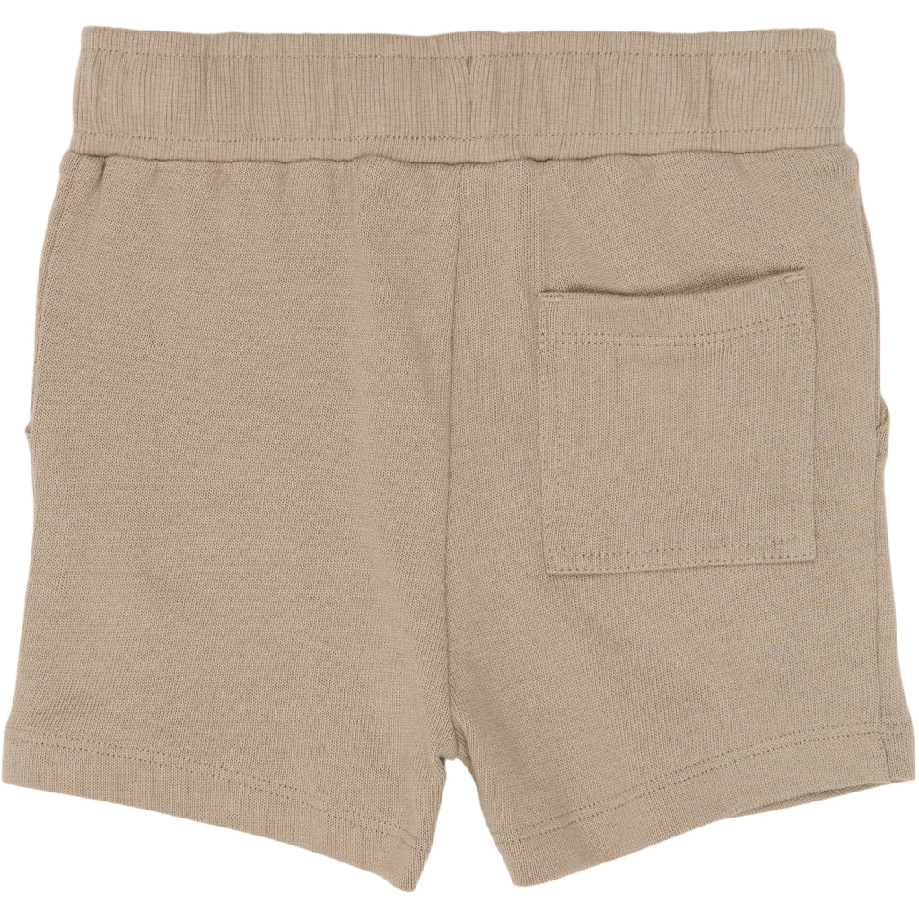 These toddler boy shorts are made from 100% organic cotton and designed for easy, everyday wear. The pull-on style features an elasticated waistband for a comfortable fit. Front slanted pockets and a single back patch pocket offer simple storage details. The shorts have a relaxed cut with stitched hems that sit neatly for a clean look. Easy to pair with tees and sweatshirts, they work well for warm-weather outfits.