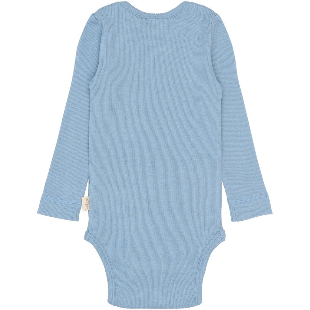 Langærmet body lavet i vores klassiske ribkvalitet. I venstre side af halsåbningen har vi vores signaturåbning med en trykknap til nem åbning. Bodyen lukkes forneden med tre trykknapper, til nem bleskift. Materialet er blødt og meget strækbart, lavet til komfort og leg. Produceret i Indien.