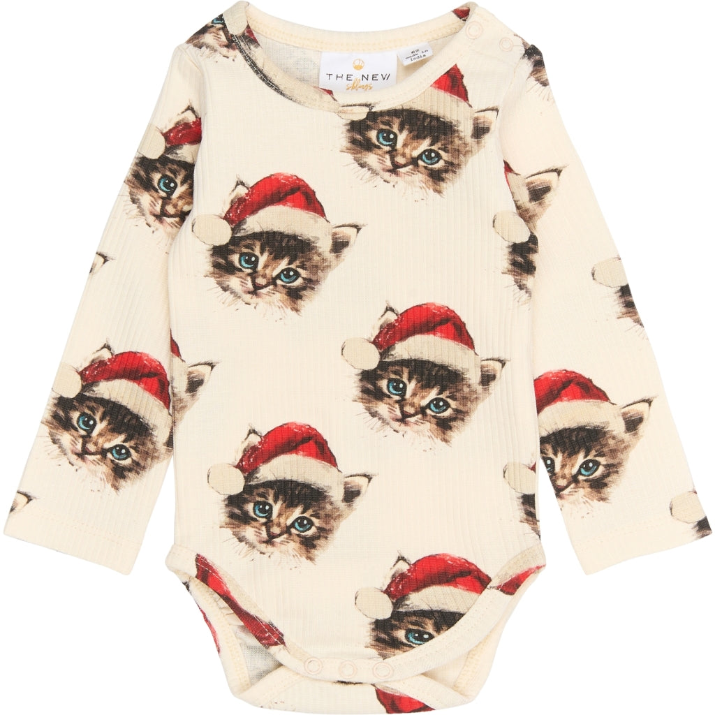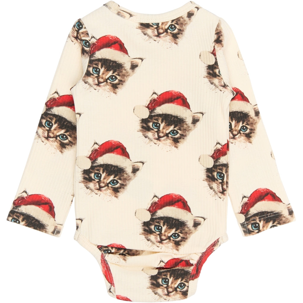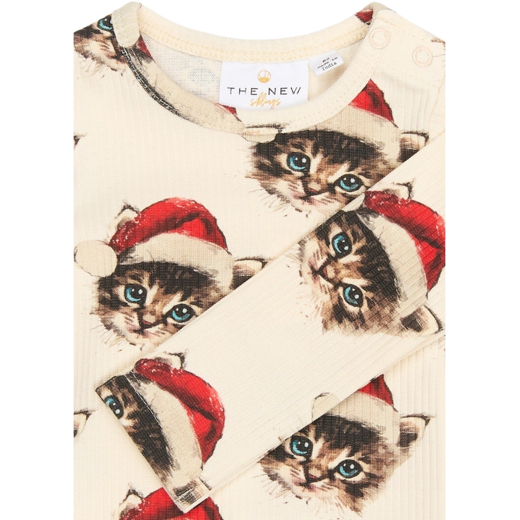 TNSBHoliday Langærmet Rib Bodystocking - Gardenia Cat AOP