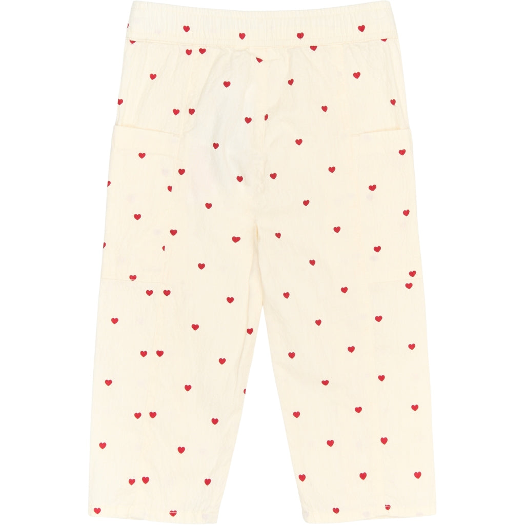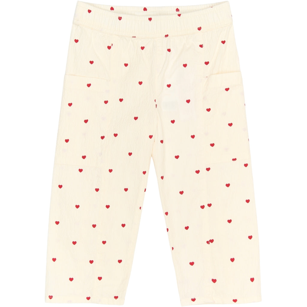 Disse bukser fra THE NEW Siblings er en skøn kombination af komfort og charme. De er designet med et legende all-over hjerteprint og har en afslappet pasform, som giver masser af bevægelsesfrihed til hverdagsbrug. Bukserne har elastik i taljen og rummelige forlommer, hvilket gør dem både praktiske og behagelige for små eventyrere.